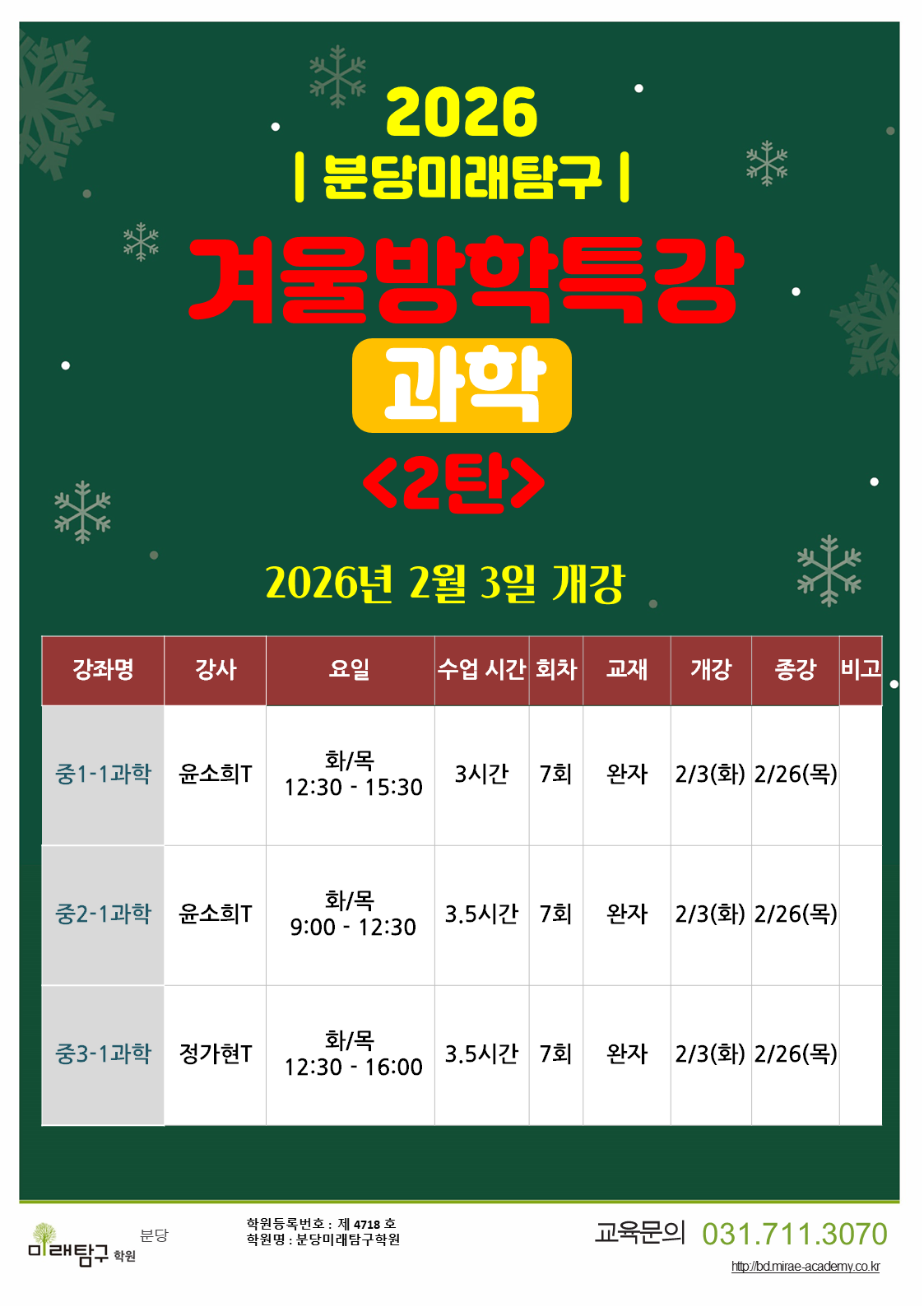 2탄!!<겨울방학과학특강>2월개강