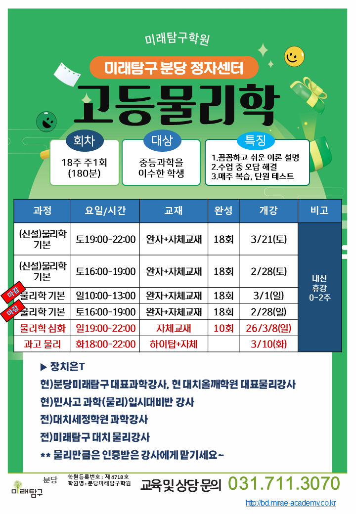 <고등물리학기본/심화>3월21일/22일개강